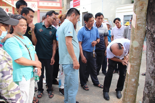 在木樁實(shí)練中,邢壯福向膠農(nóng)講述了橡膠樹種植管理、開線、如何下刀、收刀、撐刀手法、腳步等各個環(huán)節(jié)的技術(shù)要求,邊講解邊示范操作。膠農(nóng)們聽得很認(rèn)真,學(xué)習(xí)積極性非常高,爭相現(xiàn)場實(shí)踐,邢壯福不厭其煩地幫助他們糾正不規(guī)范動作。