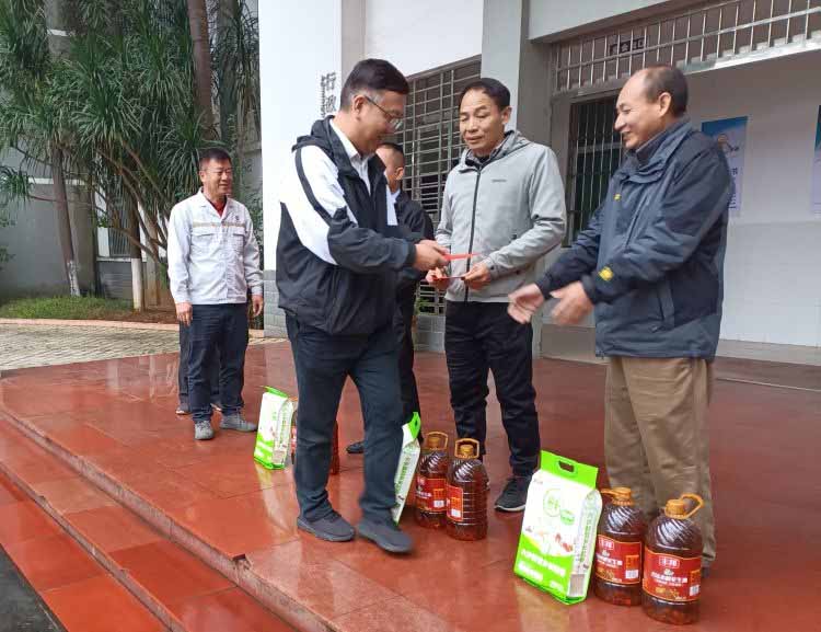 1月26日下午, 海南橡膠黨委委員、副總經(jīng)理,金橡公司黨委書記、董事長(zhǎng)楊宇,深入金星橡膠加工分公司慰問3名困難黨員。