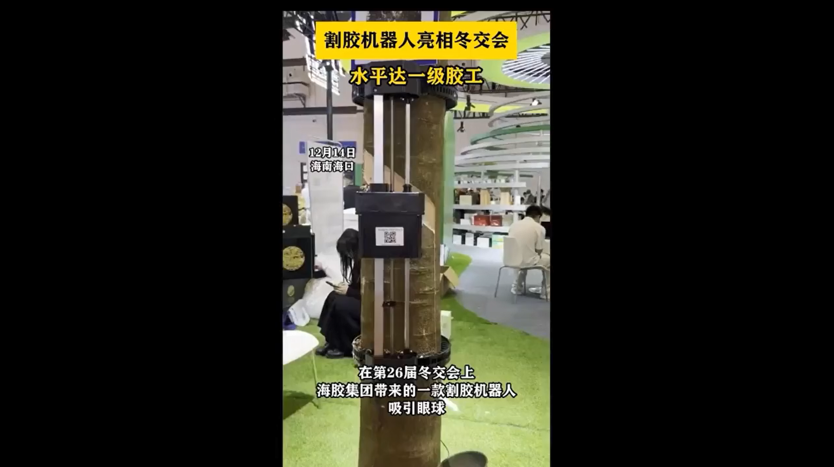 在第26屆冬交會上,海膠集團帶來的一款割膠機器人吸引眼球。